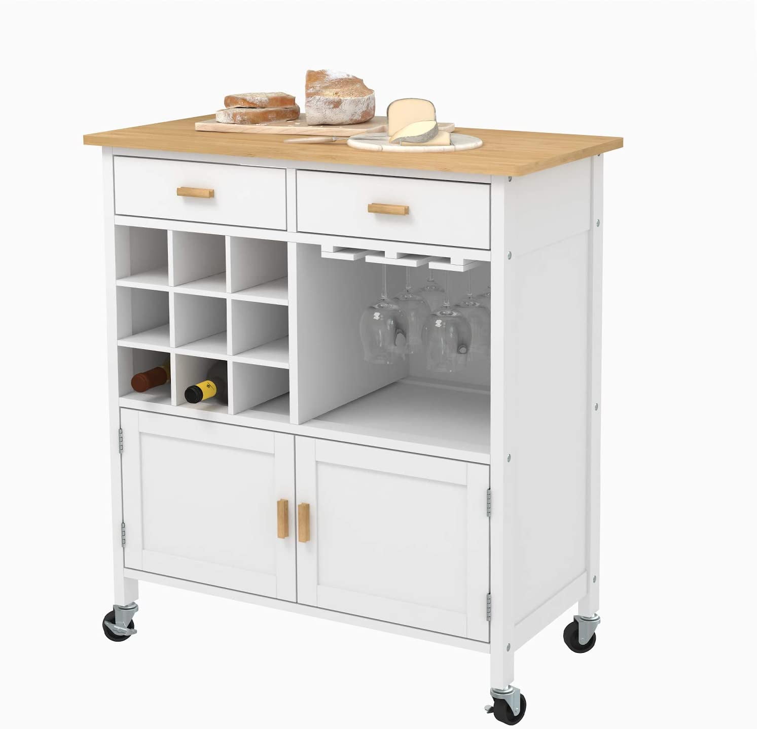Smooth and waterproof finish are easy to clean.</p> <p>【versitile storage space】features with 2 drawers ,1 storage cabinet and 2 open shelves with wine rack and rail for goblet which provide enough storage space for you.</p> <p><b>【rolling.