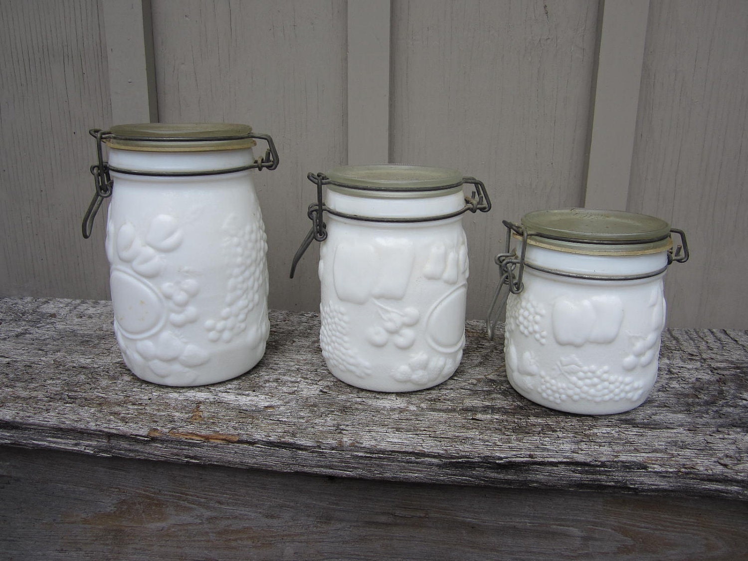vintage milk glass canister set, Wheaton country orchard ... from laurelleaffarm.com Check spelling or type a new query. Maybe you would like to learn more about one of these? We did not find results for: Vintage white milk glass canisters.