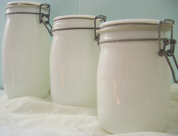 Vintage white milk glass canisters. Maybe you would like to learn more about one of these? We did not find results for: Check spelling or type a new query.